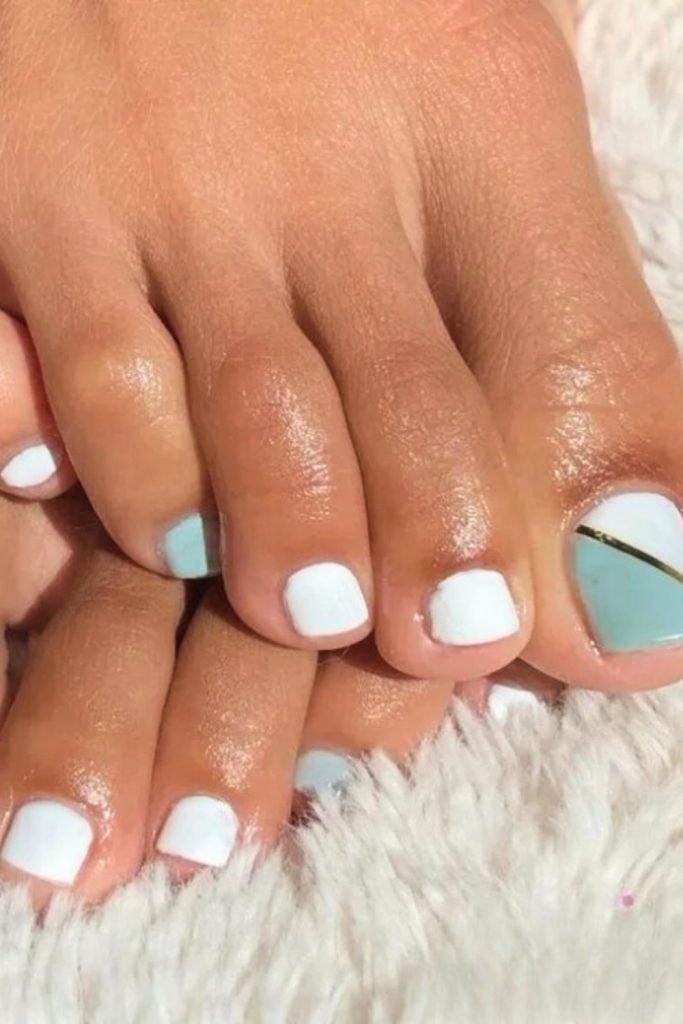 Once dry, use a creamy white polish to paint the tips of your nails. It’s like giving your toes a chic, minimalist upgrade.