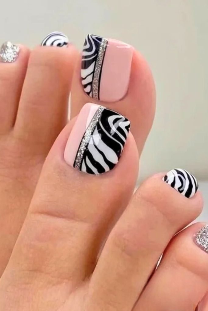 13. Glamorous Zebra Sparkle Pedicure