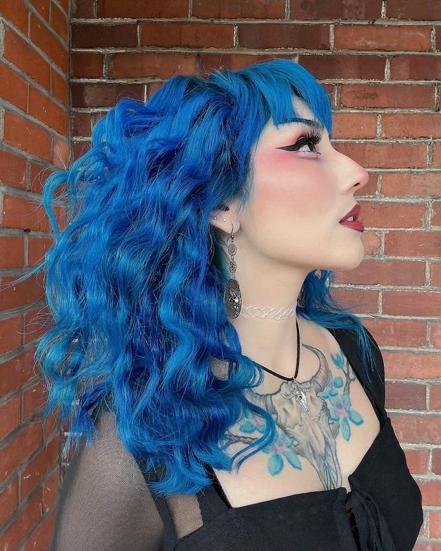 If you want to channel your inner witch with a bold color, go for electric blue curls. This vibrant blue hue paired with textured, voluminous curls creates an otherworldly look.