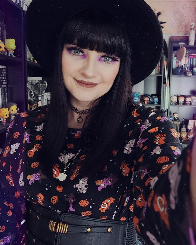 The blunt bangs add to the edgy feel, making it a standout style for witches who want to be noticed.
