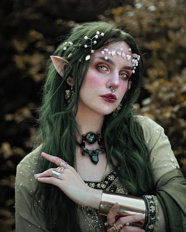 To create this look, dye your hair a deep green shade and style it into loose waves. Add delicate accessories like faux leaves or pearl tiaras to enhance the magical elven vibe.
